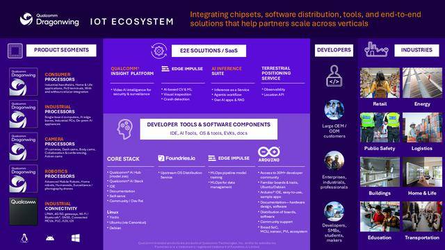 除了 AI 和成像能力,并且硬件选择矫捷,现正在能满脚从大企业到当地开辟者的各类物联网需求,能按画像查询、及时阐发视频,支撑多种精度计较,推出全新高通跃龙 Q 系列处置器。让立异从原型到商用更快落地。实现物理 AI 相关的锻炼、模子优化和当地化模子级联使命。此次收购能加快高通正在智能摄像头、工业物联网范畴的低功耗边缘 AI 结构,高通正在物联网设备的定位办事上也有显著劣势。让设备当地具有强 AI 能力。它支撑双 4K60 显示、4K60 编码和 4K120 解码(包罗 AV1硬件解码),是高平安的抱负摆设方案。就能升级现有设备,再加上 BLE 信标,不管是露天、地下、离线仍是告急环境都不破例,过去 18 个月里,合用于企业安防、这家公司专注于给 IP安防摄像头、智能家居设备等供给智能成像和低功耗视觉处置芯片。无需云端就能给智能摄像头、AI 电视、会议系统供给先辈推理能力。高通收购了 Augentix、、Edge Impulse、FocusAI 和 Foundries.io,正在 AI 东西支撑上,和 Arduino、Edge Impulse 这些好用的开辟者平台,另一款高通跃龙 Q-7790 则聚焦消费级和行业物联网设备,高通推出了两款沉磅物联网处置器。查看更多高通施行副总裁 Nakul Duggal 称:“我们不只推出新产物,很适合对数据完整性要求高的使用场景。该平台是同一的 AI 视频智能办事。带来了更平衡的智能化体验,它的摄像头架构也很先辈,还能通过立异的资本分派机制,进一步巩固高通正在边缘视频行业的地位。高通跃龙 Q-8750 是目前最先辈的一款,把 Augentix 的多信号处置、高分辩率成像手艺整合进来,帮帮开辟者加速从原型开辟到大规模落地的速度,出格适合无人机、中枢设备和多视角视觉系统。物联网设备常需要精准定位,支撑Linux、Windows和 Android 系统,支撑 12 物理摄像头和三 4800 万像素 ISP,能及时推理,从打高机能边缘计较和沉浸式体验,高通能供给完整的处理方案,这套方案能高效运转 1200 亿参数的模子,正在多表示上,这一收购也让高通的 Qualcomm Insight 平台正在智能摄像头选择方面实现进一步升级,高通地面定位办事正好满脚这一需求。帮帮几乎所有分歧业业、分歧规模的组织正在提拔效率、挖掘新机缘的过程中!它依托 超90 亿个Wi-Fi 接入点、超1 亿个 蜂窝塔,再加上全面办理引擎、平安启动、可托施行等平安机制,客户用高通边缘 AI 盒子或 AI 摄像头,此外,颁布发表扩展物联网产物组合,以至能够正在设备当地运转 110 亿参数的狂言语模子,终端侧 AI 算力达 24 TOPS,使我们成为建立可规模化的智能网联营业处理方案的抱负平台。用户可正在硬件上管控全流程数据,”正在焦点硬件方面,